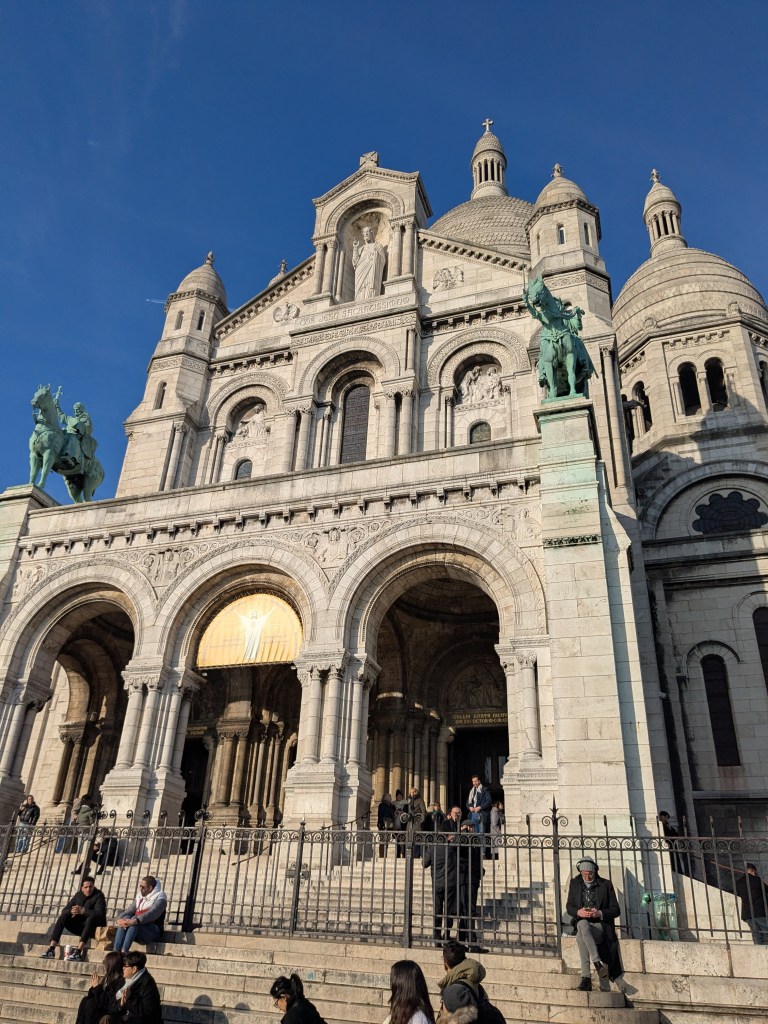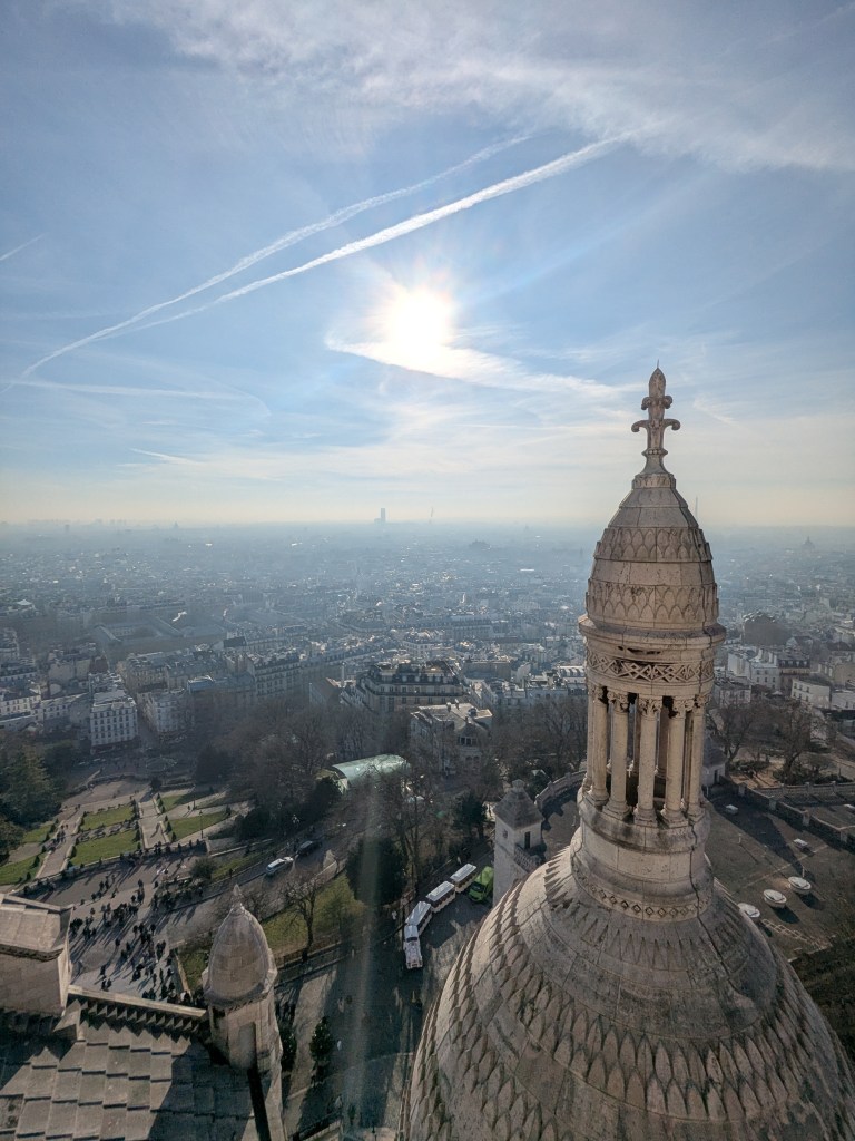 Lors de notre visite, nous avons eu le privilège d’assister à la messe à l’intérieur de la basilique. Avant la messe, nous nous sommes dirigés vers le sommet de la colline, d’où la vue sur Paris s’étendait devant nous, offrant un magnifique panorama sur la ville. De plus, l’atmosphère à l’intérieur était sereine, avec les mosaïques dorées et l’architecture grandiose ajoutant au sentiment de révérence. La montée jusqu’au dôme de la basilique était un peu difficile, mais l’effort en valait la peine. Une fois au sommet, nous avons été récompensés par l’une des plus belles vues de la ville, avec la Tour Eiffel et la vaste ville avec le paysage en contrebas.