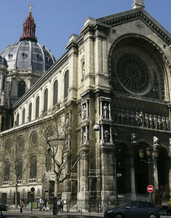 The Church of Saint-Augustin, built in 1871, is a remarkable example of late 19th-century architectural innovation, built during the great renovation of Paris under Haussmann during the reign of Napoleon III. The design of the church combines traditional forms with the technological advances of the time, particularly in the use of cast iron for its framework. This choice of material was revolutionary at the time, allowing for larger windows and a more expansive interior than traditional stone construction would have allowed. Saint-Augustin also incorporated modern amenities, such as electricity and a heating system, making it one of the first churches in Paris to adopt these technological innovations. Additionally, the church’s red spire is one of its most unique features. The combination of cast iron construction, electricity and bold design reflects the optimism of the Industrial Revolution and Haussmann’s vision of a modernized Paris.